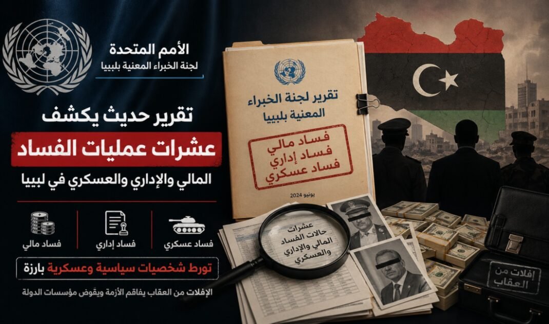 كشف تقرير حديث صادر عن لجنة الخبراء التابعة للأمم المتحدة والمعني بدولة ليبيا عن عشرات عمليات الفساد المالي والإداري والعسكري لشخصيات سياسية وعسكرية لازالت في مناصبها وكذا كيانات داخل الدولة.